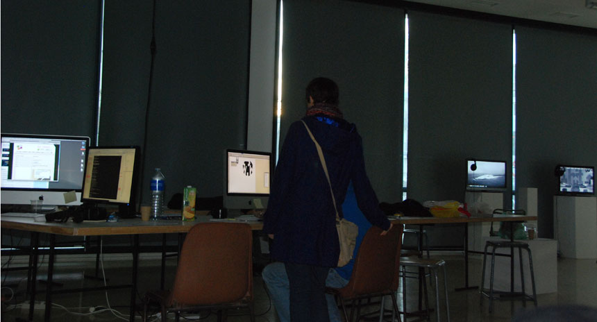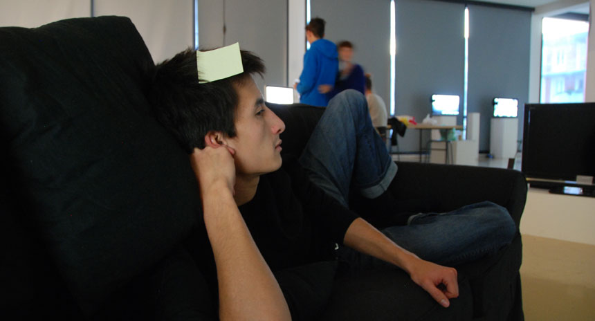 Ce qui est intéressant, c’est que nous étudiants, avons eu l’histoire de la pièce racontée. En outre, il n’existe à l’heure actuelle aucun enregistrement de Melik qui en parle concrètement. Le dispositif était tel : Nous étions installés dans notre magnifique espace de discussion, sur les sofas qui aspirent le corps de quiconque s’assoit dedans, à se remémorer ce dont l’artiste nous avait parlé. Une oratrice, Marion, contait ce qu’elle avait prit en note, et nous autres, complétions s’il manquait quelques bribes d’histoire. Il s’agissait de partager les fragments de notre mémoire pour avoir une version plus ou moins complète à plusieurs. L’ambiance était détendue, et le temps présent était apprécié par tous.